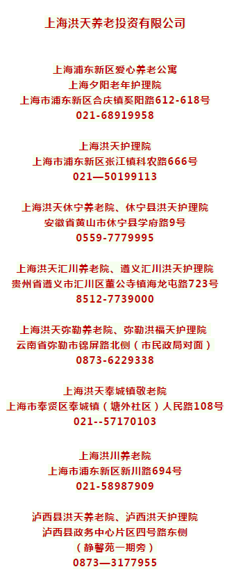 上海洪天汇川养老院、遵义汇川洪天护理院